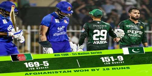 افغانستان بمقابلہ پاکستان : افغانستان کی پاکستان پر یادگار فتح ، ٹرائی نیشن سیریز کا چوتھا مقابلہ: افغانستان نے پاکستان کو 18 رنز سے شکست دے دی