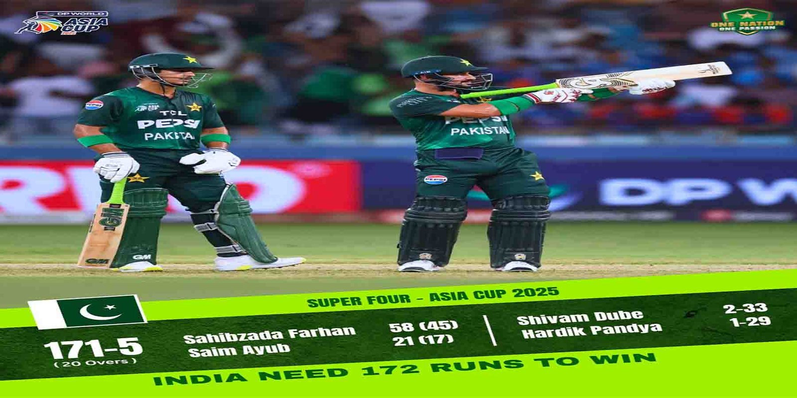 ایشیا کپ سپر فور میں پاکستان کی اننگز اور بھارت کے خلاف 172 رنز کا ہدف