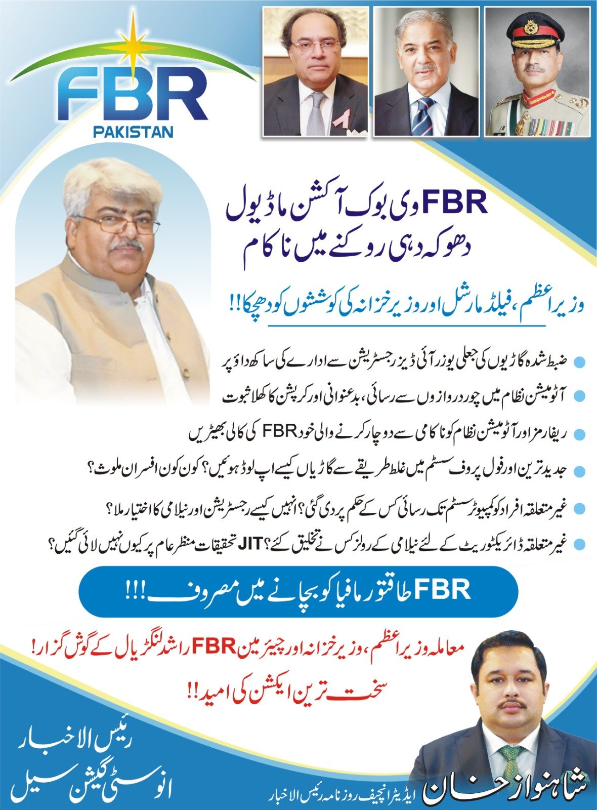 ایف بی آر آکشن ماڈیول اسکینڈل صرف گاڑیوں کی غیر قانونی رجسٹریشن تک محدود نہیں بلکہ ایف بی آر جیسے بڑے ادارے کی ساکھ پر براہ راست حملہ ہے۔ عوام سوال کر رہی ہے: