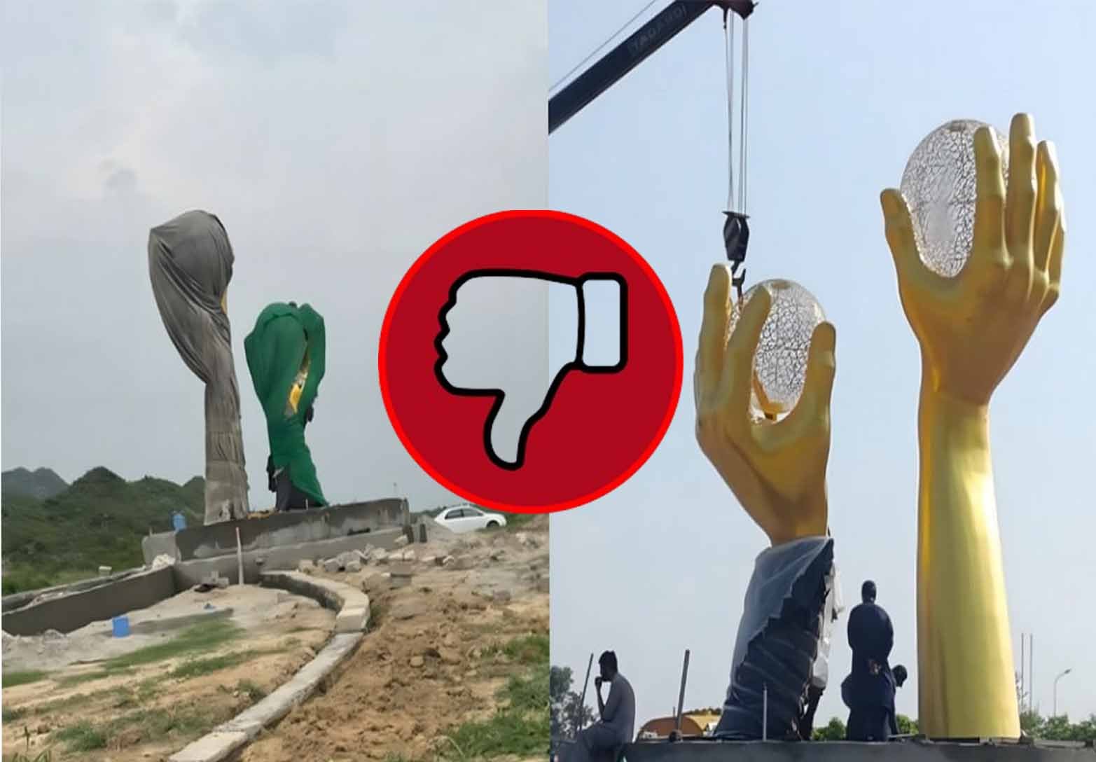 اسلام آباد انتظامیہ نے مارگلہ ایونیو چورنگی پر نئی یادگار نصب کی تھی، جس میں سہنری رنگ کے دو انسانی ہاتھوں کو دکھایا گیا تھا جبکہ ان ہاتھوں پر سفید گیند نما چیز بھی نصب کی گئی تھی۔