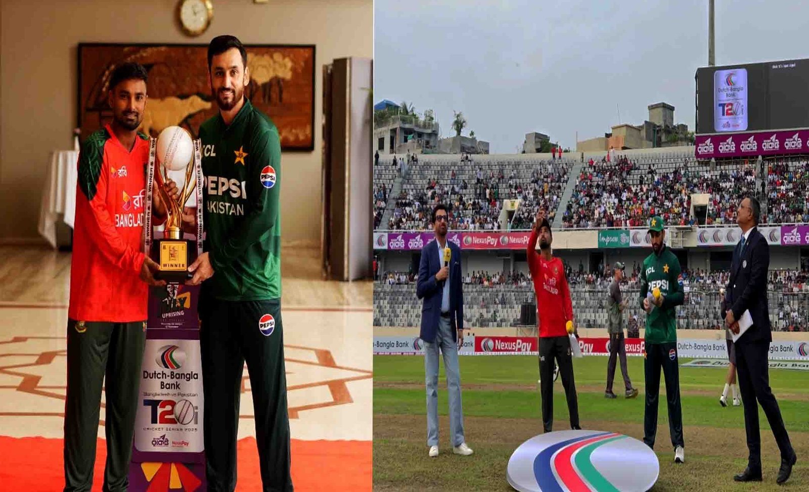 پاکستان اور بنگلا دیش کی کرکٹ ٹیموں کے درمیان تین ٹی ٹوئنٹی میچوں کی سیریز کا آغاز آج ڈھاکا میں ہونے والے پہلے میچ سے ہو رہا ہے۔ سیریز کی ٹرافی کی رونمائی ایک پُروقار تقریب میں ڈھاکا کے مقامی ہوٹل میں کی گئی، جہاں دونوں ٹیموں کے کپتان موجود تھے۔