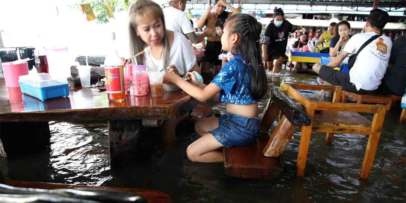 تقریباً 11 روز قبل قریب ہی دریا کا بند ٹوٹنے سے یہ سیلابی ریسٹورینٹ تھائی لینڈ مکمل طور پر پانی میں ڈوب گیا تھا۔ پانی کی سطح ایک سے ڈیڑھ فٹ تک پہنچ گئی، لیکن جیسے ہی پانی تھوڑا کم ہوا، مالکان نے اسے دوبارہ کھول دیا۔ اب یہ سیلابی ریسٹورینٹ تھائی لینڈ نہ صرف کھانے کے لیے بلکہ مچھلیوں کو چارہ ڈالنے اور پانی میں کھیلنے کے لیے بھی لوگوں کو اپنی طرف کھینچ رہا ہے۔ بچے اور بڑے دونوں یہاں آ کر مچھلیوں کو دیکھتے اور کھانا کھاتے ہیں، جو ایک انوکھا تجربہ فراہم کرتا ہے۔